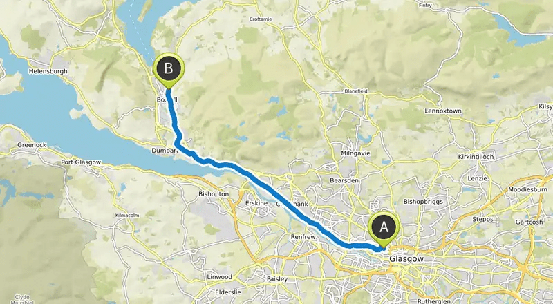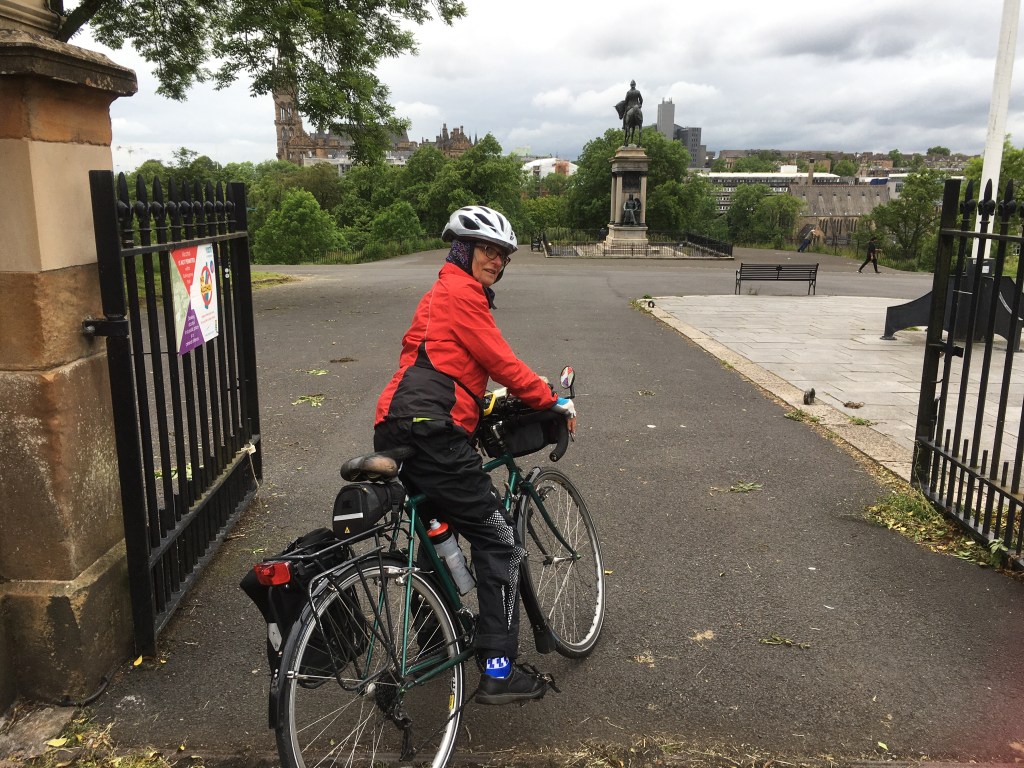 The Sustrans route looked easy to follow all the way from Glasgow to Loch Lomond. To reach it we went through the elegant gates of the park opposite the SYHA hostel where I slept last night, and then down such a steep slope that I bottled out and pushed my bike. After that we had to negotiate a network of streets where, despite Paul and his Garmin, we had to constantly ask for directions until the start of the Sustrans route was located.